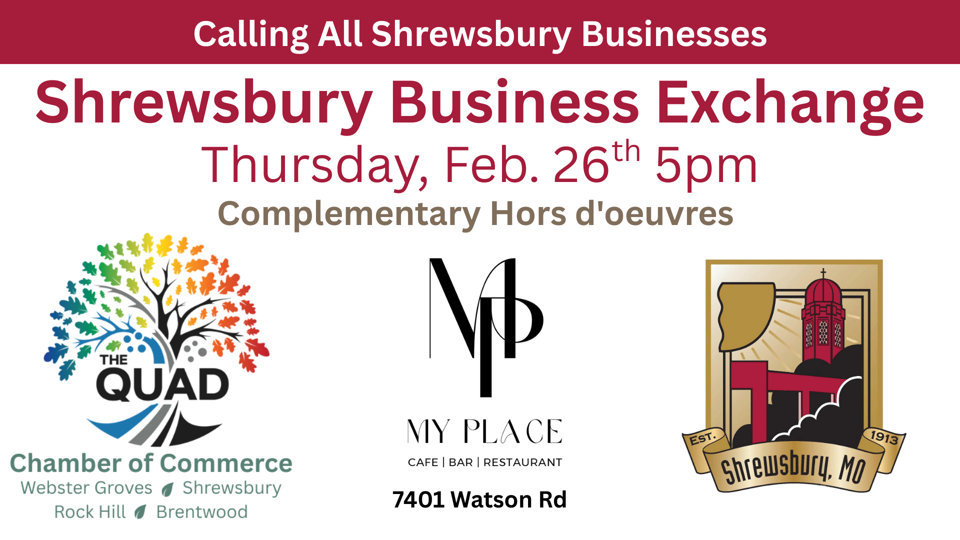 The Webster Groves/Shrewsbury/Rock Hill/Brentwood Area Chamber of Commerce provides referrals, marketing opportunities, educational resources, advocacy, information, and employee recruitment to our membership.